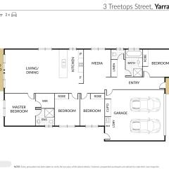 • Two living zones (open-plan living/dining + separate media)